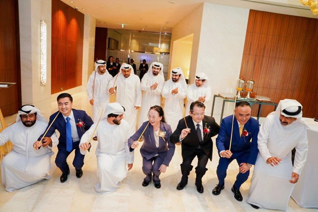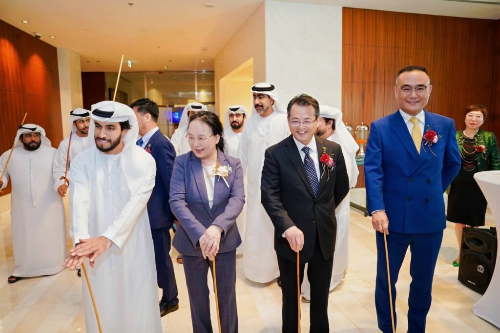 As traditional Emirati music filled the air, a local professional dance troupe performed the representative “Ayala Dance” at the entrance of conference hall. The dancers, holding traditional wooden sticks, moved in synchronized formations to the rhythm of steady drumbeats. Their powerful movements combined with flowing rhythm, creating a compelling performance.