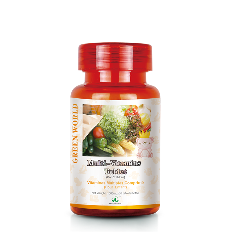 Vitamins play an important role in maintaining healthy growth of children. They can be used up or lost quickly therefore it is vital that your child intakes the essential vitamins daily. Optimal growth and development is critical during childhood and as a result vitamin requirement during this period is high compared to the volume of the food they eat. If a child has a poor appetite or erratic eating habits, or if he/she consumes a highly selective diet, it is common for the child to have vitamin deficiency. Green World Multi-Vitamins Tablet (For Children) provides your kids with vitamin A, vitamin B1, B2, B6, B12, vitamin C, vitamin D, vitamin E, folic acid, and niacin.